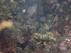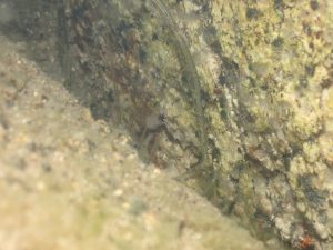 手長エビを見つけたんですが、石の中にお隠れになってしまって。手だけ。
