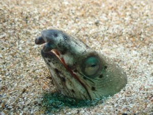 1枚目はホタテウミヘビいつものように砂の中からこっちを見ていくれていました。前回からあんまり移動していない感じ。